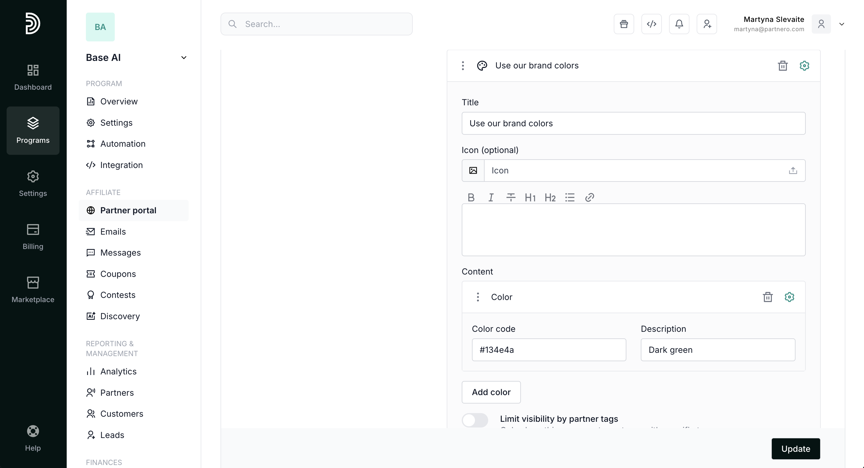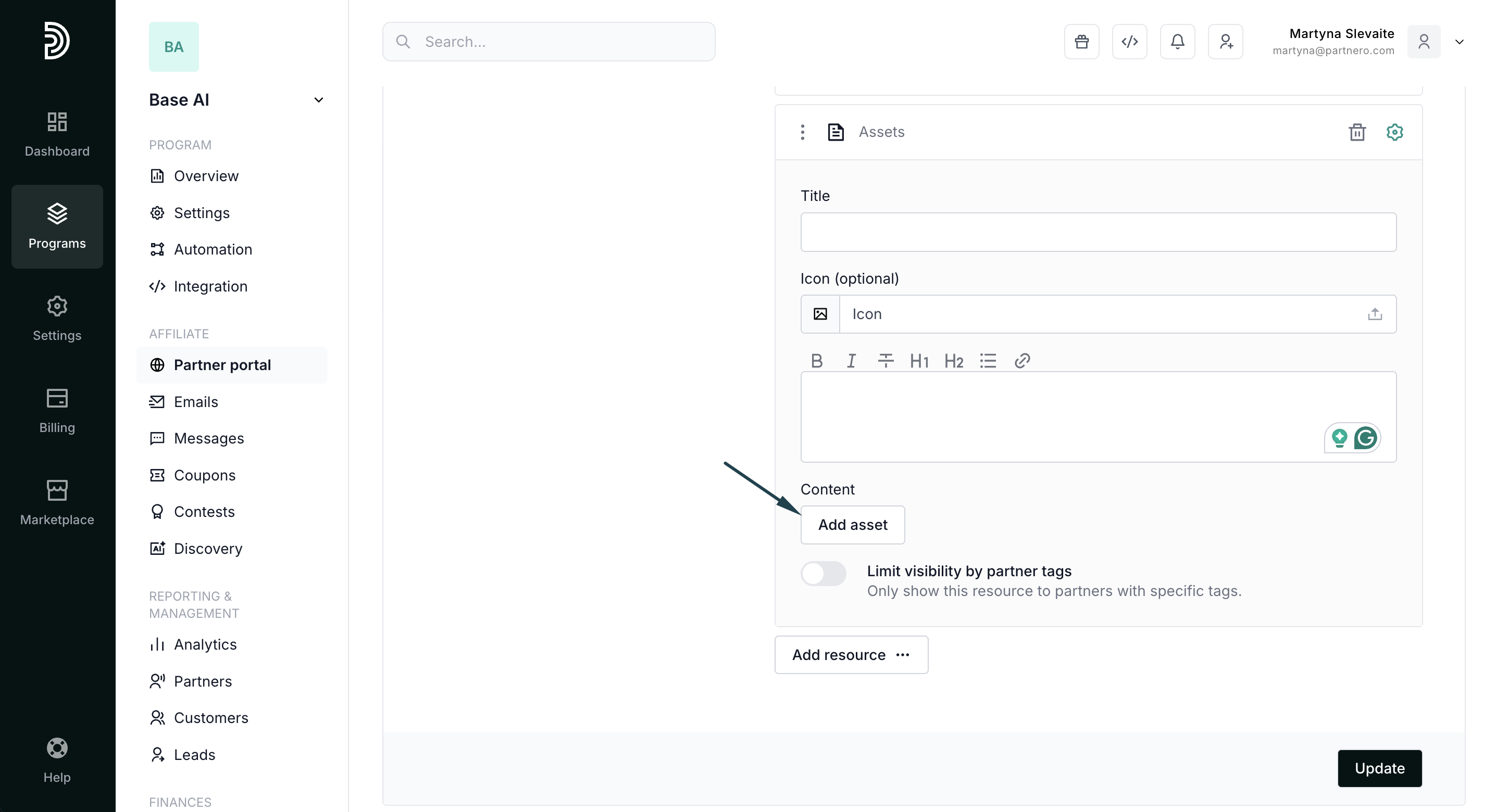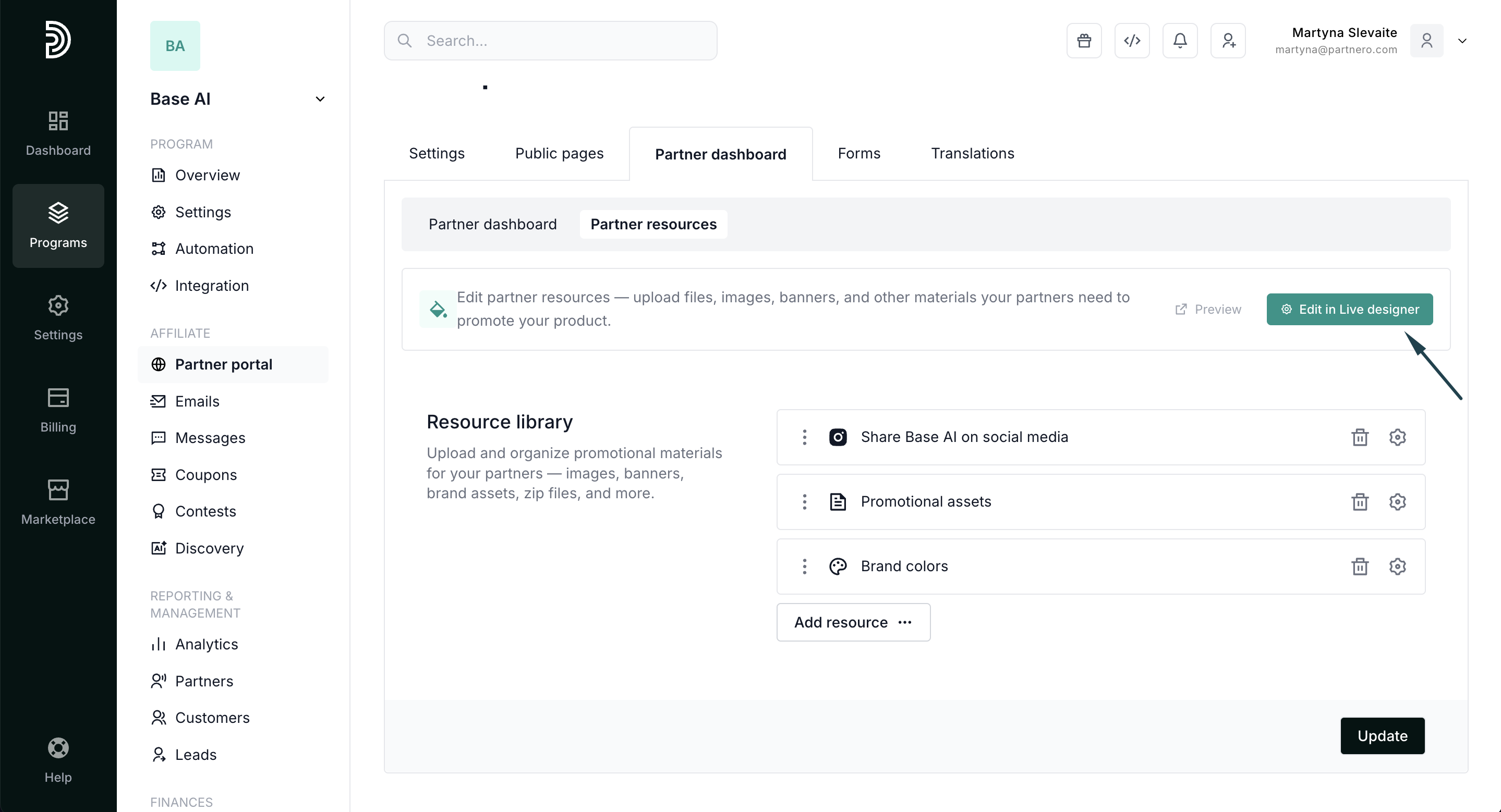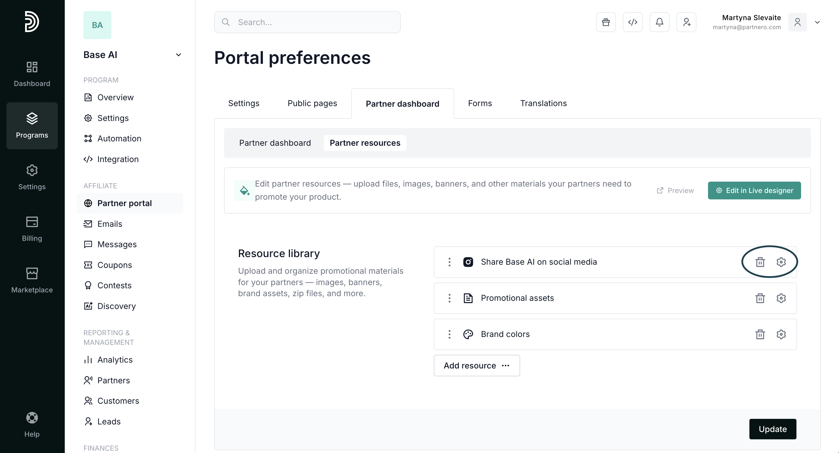 Tip! While building the Resources page, have your Partner portal open in a separate tab. Every time you click Update on Partnero, refresh the Partner portal to see the changes reflected immediately. Explore all options and find what you like.